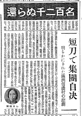短刀で集団自決 明らかにされた満州信濃村の悲劇