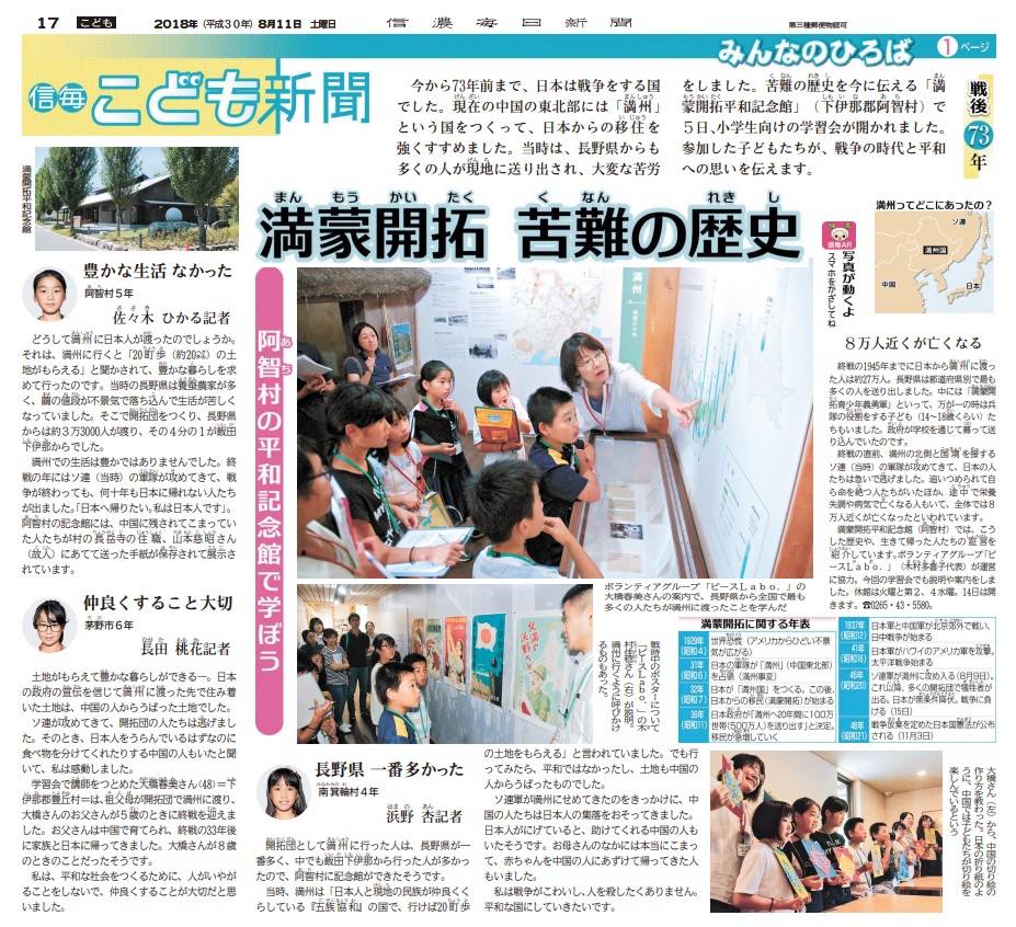 こども記者が満蒙開拓平和記念館で学ぶ